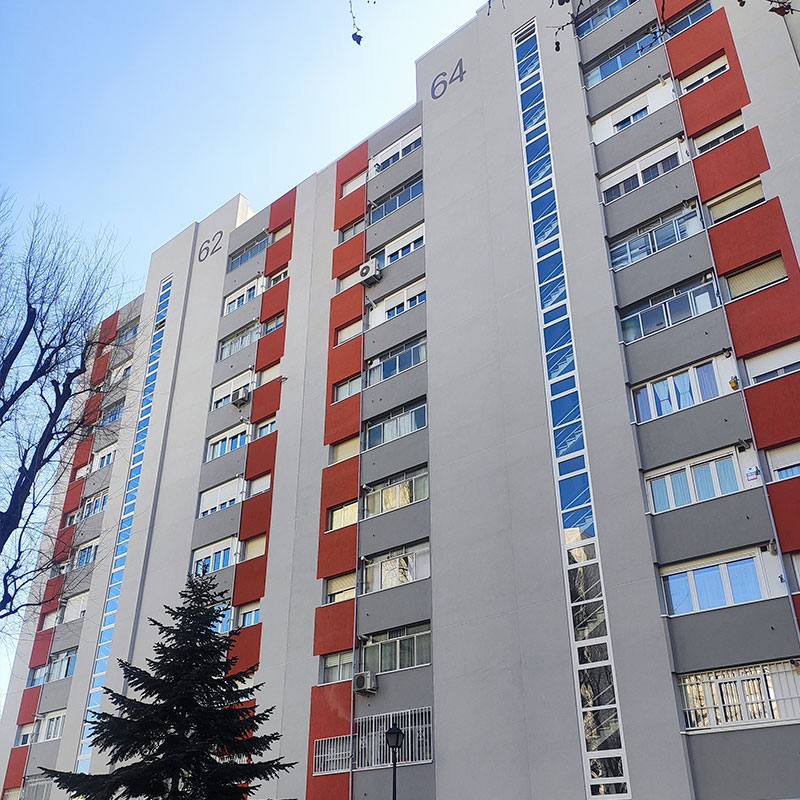 La aportación de nuestro equipo en Orcasitas inicia en el 2016, con el SEGUNDO PREMIO en el concurso de ideas RENOVE ORCASITAS del COAM. Esto llevó, con gran impulso por parte de los vecinos, a la realización de los primeros prototipos en el 2018 y a una actuación posterior a nivel de barrio, formado por bloques de 11 plantas y unifamiliares, y con un total de 3.200 viviendas.